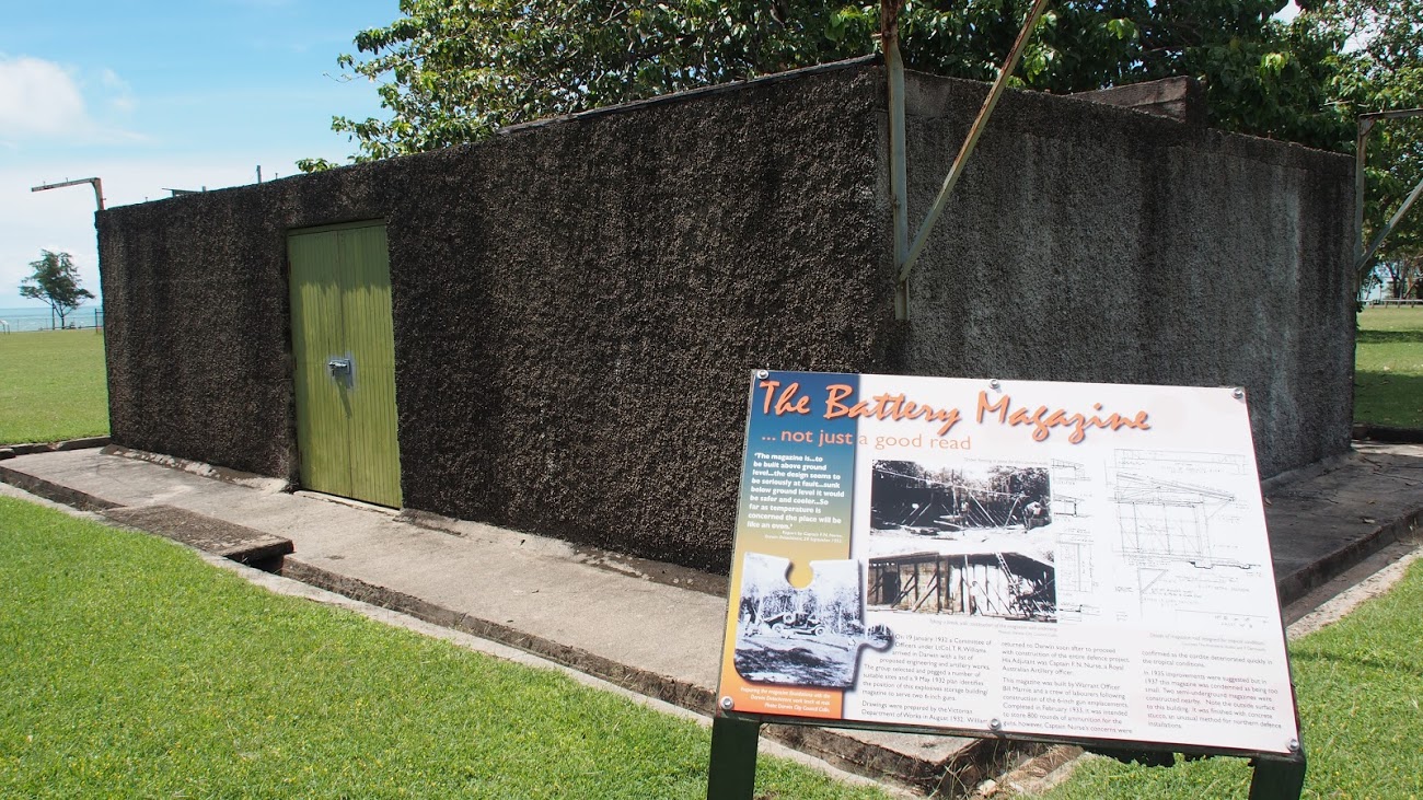 11/16 Home/Darwin East Point Reserve / East Point battery magazine ‹ › This battery magazine bunker storage was a mistake as it was built above ground, this area also includes the 150mm and 230mm gun (cannons) emplacements... Download Darwin eMaps in English/Chinese or English/Japanese Darwin Maps too Rate this photo Informations Tags darwin , East Point , WW2 bunkers Albums Darwin East Point Reserve Visits 4977 Rating score no rate
