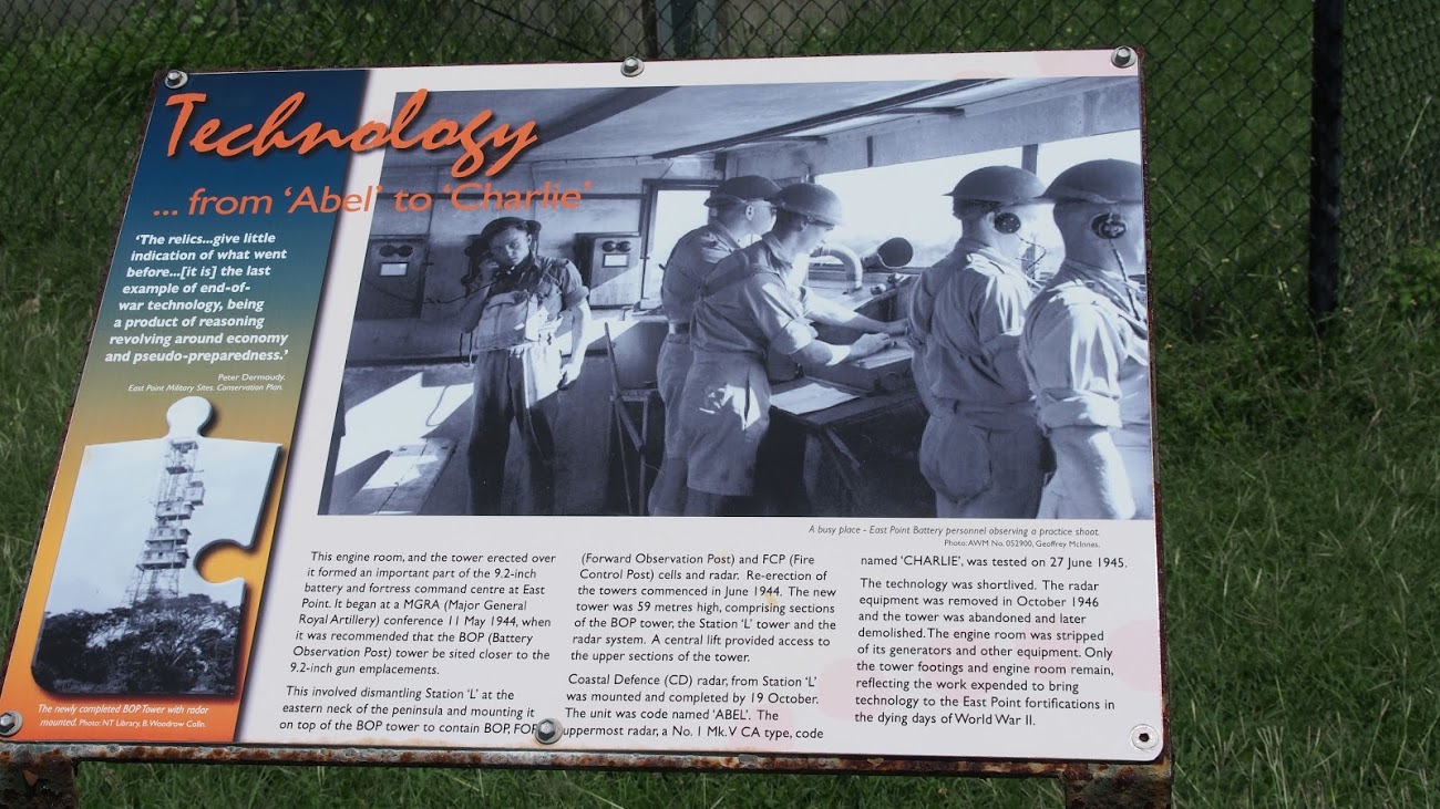 - 6-inch cannon , 9.2-inch cannon , darwin , East Point , lookout tower , watch tower , WW2 bunkers