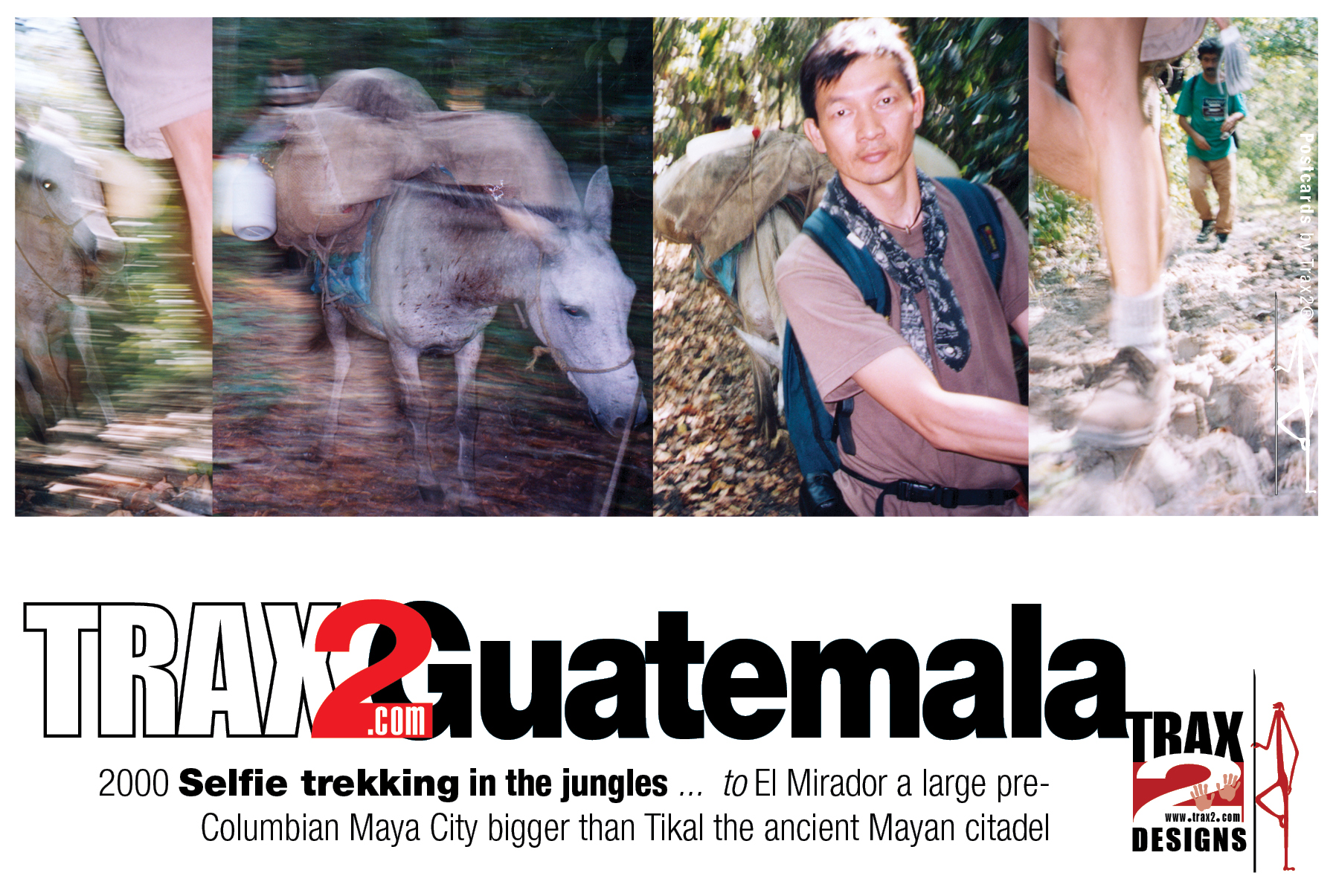 2000 Guatemala trekking which turned into one of my most difficult treks as it takes 2 days trek to reach El Mirador, these photos are what I used to call "self-portraits" where I strapped my 35mm film camera or video camera to a stick and set the self timer as I walked - today their called selfies