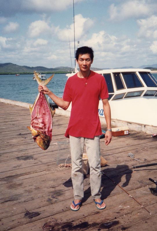 Bill with his filleted golden trevally taken off the Cooktown pier north of Cairns 1990 or 1991